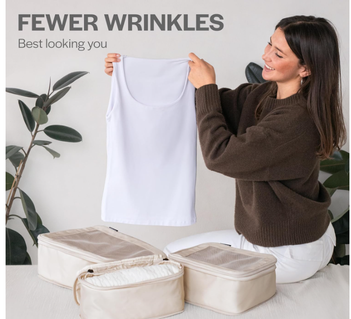 When you use compression packing cubes, you can fit 30–50% more clothing in the same suitcase.